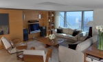 В люксе имеется гостиная с баром, оформленная в современном стиле, отдельная столовая с доступом к кухне и входу для обслуживающего персонала, а также просторная ванная комната, отделанная мрамором.