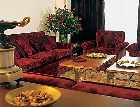 Номера категории Suite. Сюиты индивидуально оформлены с использованием шелка, тафты и элементов декора от Ральфа Лорена, Форначетти и Версаче. Ванные комнаты облицованы мрамором.
