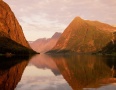 Обрывистые западные склоны Скандинавских гор изобилуют фьордами На карте их извивающиеся голубые полосы выглядят, словно сотни длинных морских языков, одновременно лизнувших берег Норвегии. Образовались фьорды по линиям тектонических разломов. Фьорды похожи на огромные коридоры с гладью прозрачных вод. Глубже всего вдаются в сушу и наиболее разветвлены фьорды Иестланна.. Самые длинные из них — Согне-фьорд (204 км) и Хардангер-фьорд (179 км).