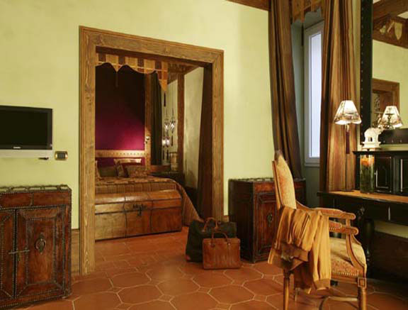 Suite Tuscan Floor (35-40 кв.м) — элегантный номер, выдержанный в пурпурных тонах, с антикварной мебелью в мавританском стиле, кроватью в алькове, украшенном инкрустированным деревом, изысканными гобеленами, состоит из спальни с гостиной зоной, ванной комнаты, выходит во внутренний дворик отеля и на старинные улицы города.