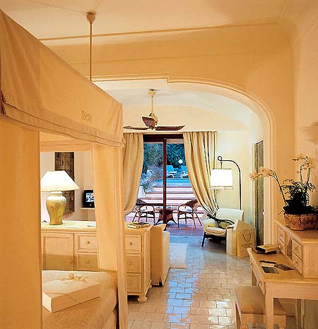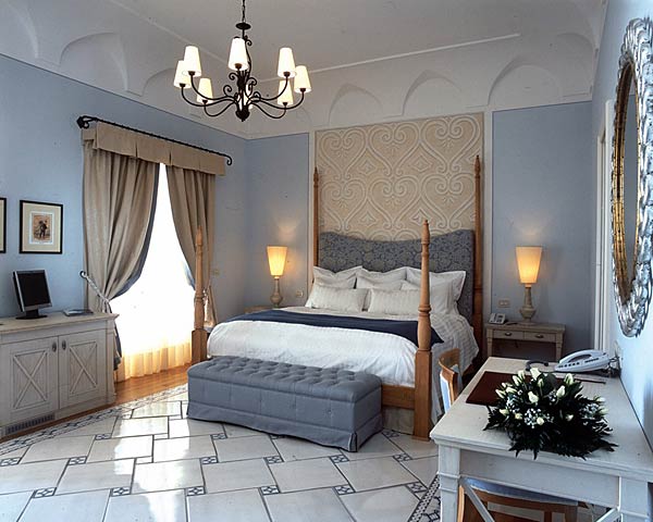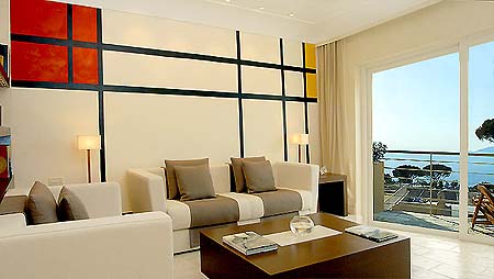 (50 кв.м) Самые новые номера в отеле были открыты в 2004 и в 2005 гг. В оформлении преобладают белые, очень светлые тона. Стены украшены картинами известного римского художника. Из окон открывается потрясающий вид на Неаполитанский залив. Номер состоит из спальни, отдельной гостиной, ванной комнаты и террасы. Deluxe pool & garden room garden side.