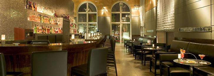 Бар Isarbar также оформлен в современном стиле. Здесь гостям предложат разнообразные коктейли и закуски.