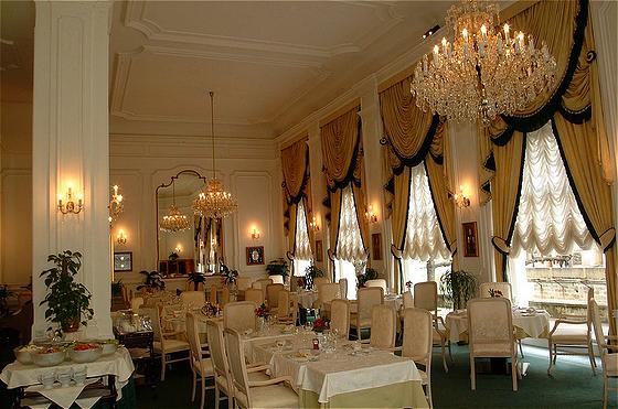 Главный ресторан отеля Grand Restaurant Pupp сочетает изысканный дизайн в стиле неоклассики и великолепные блюда чешской и международной кухни.