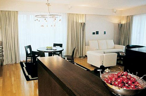 2 presidential suites в каждом из них: большая мраморная ванная комната с отдельным душем и ванной, феном и подогреваемым полом, телефон с автоответчиком, интерактивное телевидение, возможность подключения к Интернет, мини-бар, сейф, оборудование для чая и кофе, фрукты и минеральная вода.