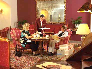 La Piazzetta De la Ville — элегантный ресторан с разнообразным и изысканным меню итальянской и международной кухонь. В летнее время столики накрываются в саду внутреннего дворика отеля.
