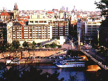 Один из лучших пятизвездных отелей, принадлежащий к всемирно известной сети гостиниц "Intercontinental", расположен на берегу реки Влтава, в историческом центре города, недалеко от Староместской площади, с великолепным видом на Пражский град, интерьер номеров выполнен в итальянском стиле. Верхние этажи отеля (8, 9, 10) предназначены для деловых людей.