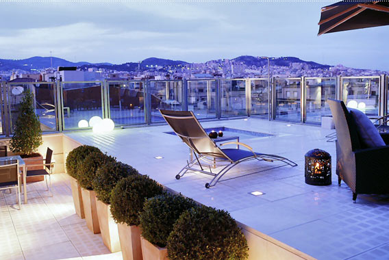 Из бара у бассейна, расположенного на 10-м этаже здания отеля, открывается чудесный вид на Барселону. Декор бара был задуман Филиппом Старком и Филиппом Стантоном.