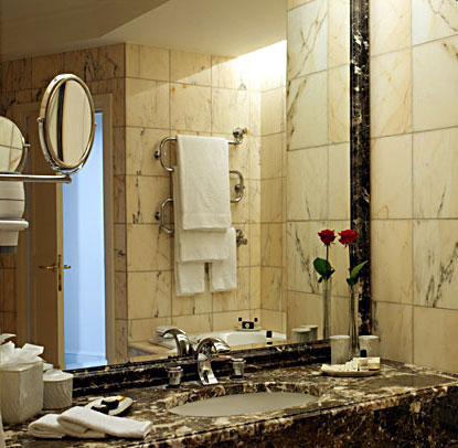 - выложенная мрамором ванная комната с ванной, душевой кабиной и подогреваемым полом.