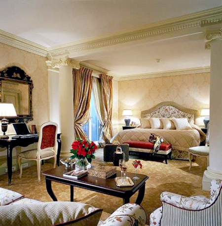 В интерьерах номеров стилизация под старинную мебель и классический декор в стиле Belle Epoque сочетаются с последними техническими новинками XXI века. Убранство номеров выдержано в теплых бежевых, красных и светло-коричневых тонах и оформлено в стиле Belle Epoque, с использованием белоснежных колонн и мраморных рельефов. Изысканная мебель выполнена в неоклассическом стиле, стены декорированы фотографиями, картинами и предметами антиквариата. Атмосферу роскоши и уюта довершают теплые ковры, роскошные драпировки, украшенные затейливыми узорами в неоклассическом стиле, изысканные люстры и светильники авторской работы, а также сложнейшие композиции из живых цветов. Самые лучшие номера расположены в шикарном пентхаусе, там же находится и жемчужина отеля — Golden Square Suite.