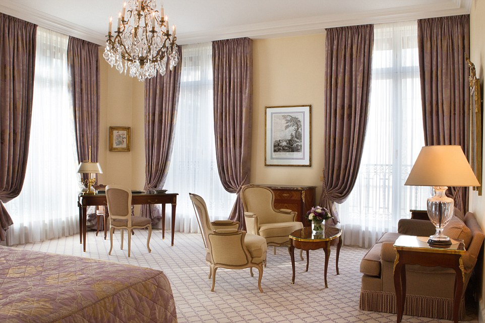 Всего в отеле 161 номер различных категорий, включая 88 стандартных номеров (Superior Room, Deluxe Room, Prestige Room) и 73 Suite (Junior Suite, Deluxe Junior Suite, Superior Suite, Deluxe Suite, Saint Honore Suite, Terrace Suite, Elysees Suite, Prestige Suite, Penthouse Suite, Panoramic Suite, Vice-Presidential Suite, Presidential Suite). Во всех номерах есть прихожие, отделяющие жилые комнаты от коридора. Мраморные ванные комнаты имеют ванну и душевую кабину.