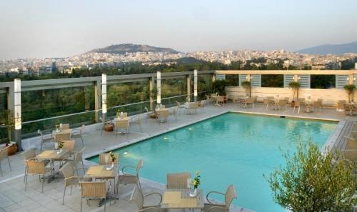 Стильный ресторан/бар Stastra с панорамными, во всю стену, окнами и стеклянным куполом, расположен на последнем этаже отеля, здесь можно отведать изысканные блюда средиземноморской кухни, полюбоваться великолепным видом Афин и послушать самую разнообразную музыку — от джаза до ритмов диско.