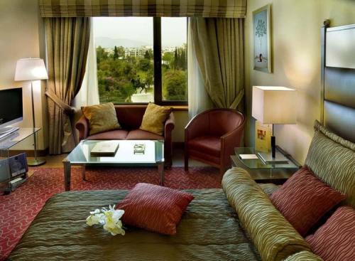 В номерах — элегантные современные интерьеры в теплых тонах, с удобной мебелью, тщательно подобранными элементами декора, из окон открывается чудесный вид на парк, Акрополь и холмы Lycabettus. В номерах, расположенных на 7 этаже и категории Suite, — просторные балконы, также номера Suite включают отдельную гостиную, спальню, ванную комнату (в некоторых номерах — с джакузи).
