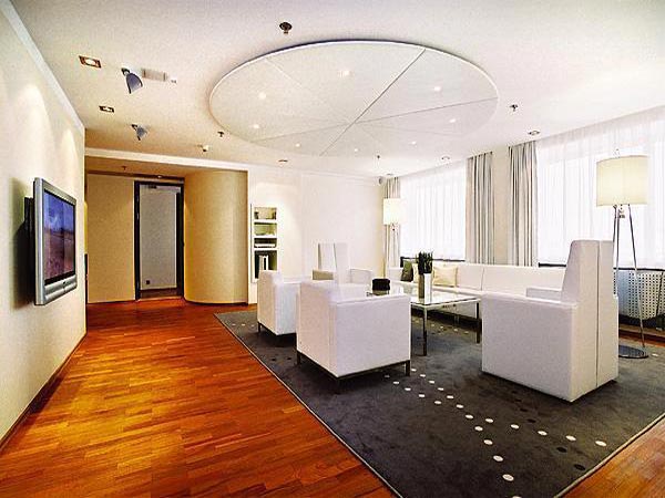 Президентский Suites – насыщенные цвета с темной блестящей деревянной мебелью и темными оттенками. Изменение освещения по желанию. Ванная комната – белые вставки и блестящий черно-серый и мозаичный кафель. Отдельный туалет и прихожая. Кроавти – две односпальные кровати, в каждой – кровать шириной 2м. Дополнительные удобства – отдельная гостиная с компьютером, сканером, копировальной машиной и факсом, стол и стулья для проведения встреч, гладильная доска, потрясащий вид на Старый Город и гавань.