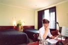 Номера среднего размера находятся наряду с ванными комнатами в хорошем состоянии и оформлены в простых тонах, в стиле, характерном для большого отеля, построенного в советские времена.