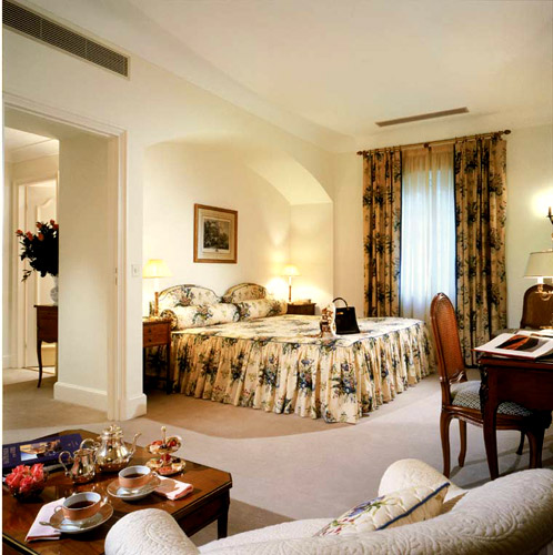 Все номера имеют террасы или балконы с видом на море. В каждом номере есть ванная комната, отделанная розовым мрамором, с ванной и душевой. Комнаты оформлены в светлых тонах, обставлены антикварной мебелью эпохи Людовика XV и Людовика XVI, украшены изысканными аксессуарами и подлинными произведениями искусства. В оформлении интерьеров использованы ткани лучших мануфактур – Rubelli, Nobilis и Colfax.