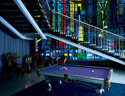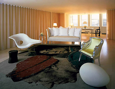 Отель Sanderson спроектирован дизайнером Phillipe Stark. В вестибюле большие красные диваны в форме губ, спроектированные Сальвадором Дали.