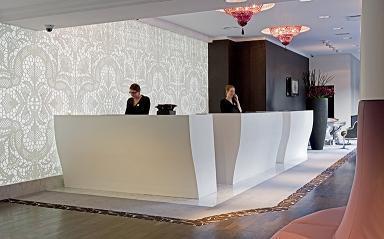 К зоне регистрации, расположенной на цокольном этаже торгового дома, нужно подняться на эскалаторе с улицы; у отеля есть также отдельный вход. Небольшое лобби, оформленное в пастельных тонах, со стойкой регистрации из красного дерева.