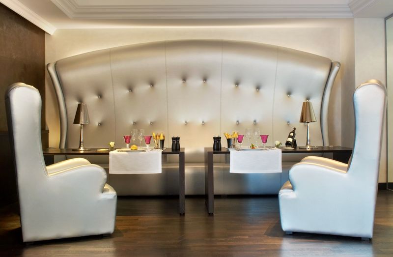 Ресторан и бары представляют собой идеальное место для отдыха и общения и предлагают сочетание утонченной французской кухни с блюдами со всего мира. Декорированный гениальным Антуаном Пинто, Хрустальный зал приветствует своих гостей очень современным дизайном, превращая их посещение в настоящее событие. Это ресторан с новой уникальной концепцией, все элементы которой - цвет, освещение и музыка - дают гостям замечательное ощущение релаксации. Огромные кожаные кресла, 12-метровая стойка бара из чистого алебастра, - этот великолепный декор станет прекрасным фоном для незабываемого вечера в Хрустальном зале.