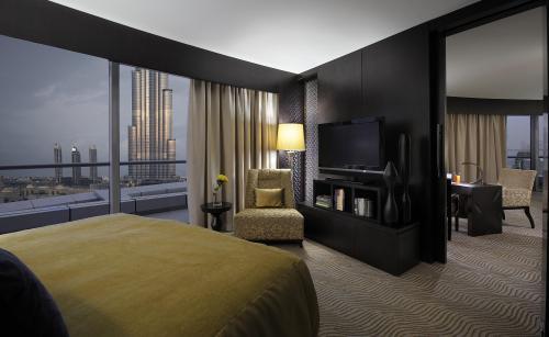 Junior suite (110 кв. м): терраса, спальня с гостиной зоной, ванная комната с ванной и душем. Вид на Burj Dubai или бульвар Burj Dubai и Старый город. Для гостей данных номеров предусмотрены особые привилегии: услуги персонального консьержа, доступ в салон, где в течение дня сервируются напитки и закуски и др.