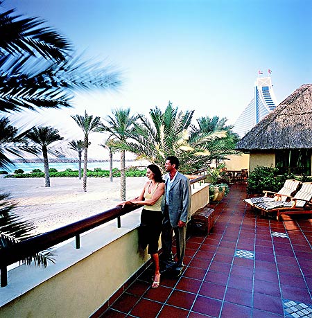 The Jumeirah Beach Hotel, состоящий из 26 этажей, является одним из символов Дубая, напоминая контурами своего здания набегающую морскую волну. Дизайн внутренних помещений подчинен арабской традиционной тематике четырех составляющих природы, каждый из которых имеет свою цветовую гамму: синий и зеленый — Вода, красный и коричневый — Земля, голубой и белый — Воздух, ярко-алый и желтый — Огонь. В этих тонах выдержаны интерьеры всех номеров и коридоров, а в атриуме лобби достигают своей кульминации. Здесь находится скульптура высотой 90 метров, изображающая вид на землю со спутника, увенчанная галактикой звезд и с луной на орбите, а в самом центре — Объединенные Арабские Эмираты. В основании этого колосса изображен океан, символизирующий Воду, часть суши — Землю, обширное небо — Воздух, а ярко-огненное солнце находится в самой верхней части атриума. Рядом с отелем находятся развлекательный аквапарк Wild Wadi Water Park, для посещения которого нужно обязательно выделить целый день, и детский клуб Sinbad.