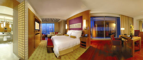 Sky Suite: 258 м2. Фешенебельный двухуровневый номер, расположенный между башнями на уровне 29 и 30 этажей, на высоте 120 м. Включает гостиную, столовую с обеденным столом на 10 человек, мини-кухню, спальню с кроватью king-size, ванную комнату.