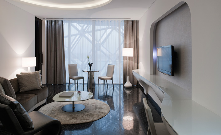 Presidential Suite: 409 м2, жемчужина отеля. Два этажа в номерах, спальня, гостиная, терраса, бассейн, собственный лифт, оборудованная кухня, столовая. Занимают 5-й и 6-й этажи корпуса Marina Tower.