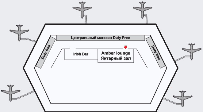 Бизнес-зал находится в транзитной зоне (после прохождения регистрации на рейс и паспортного контроля). Бизнес-зал располагается рядом с "Irish bar", напротив центрального магазина Duty Free.