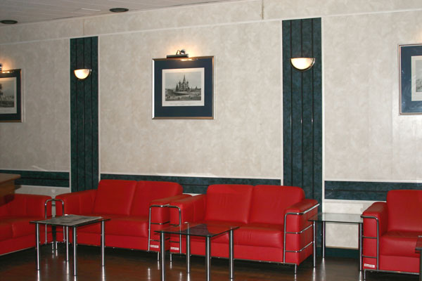 К услугам пассажира предоставляются салоны для курящих и некурящих пассажиров, с информационными табло, плазменным телевизором, свежей прессой, бесплатным баром, Интернетом, комнатой матери и ребенка.Начало посадки в самолет объявляется по громкой связи Бизнес-зала. Пассажиры, вылетающие этим рейсом, самостоятельно проходят на посадку в самолет.