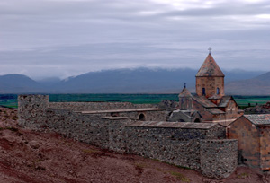 Выезжаем из Еревана по намеченному маршруту. Проезжая по араратской долине, мы делаем первую остановку у монастырского комплекса Хор Вирап (IV–XVII вв.). На горизонте встаёт громада Арарата, отделённая от нас редкой цепочкой пограничных вышек.