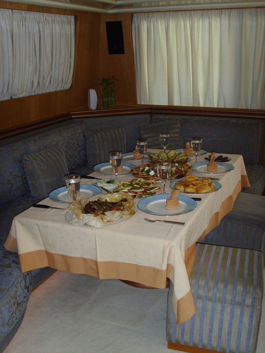- Проживание на базе полупансиона: американский завтрак, ужин, приветственный коктейль, развлекательное мероприятие "Греческая Ночь", проведение BBQ, ужин с капитаном.